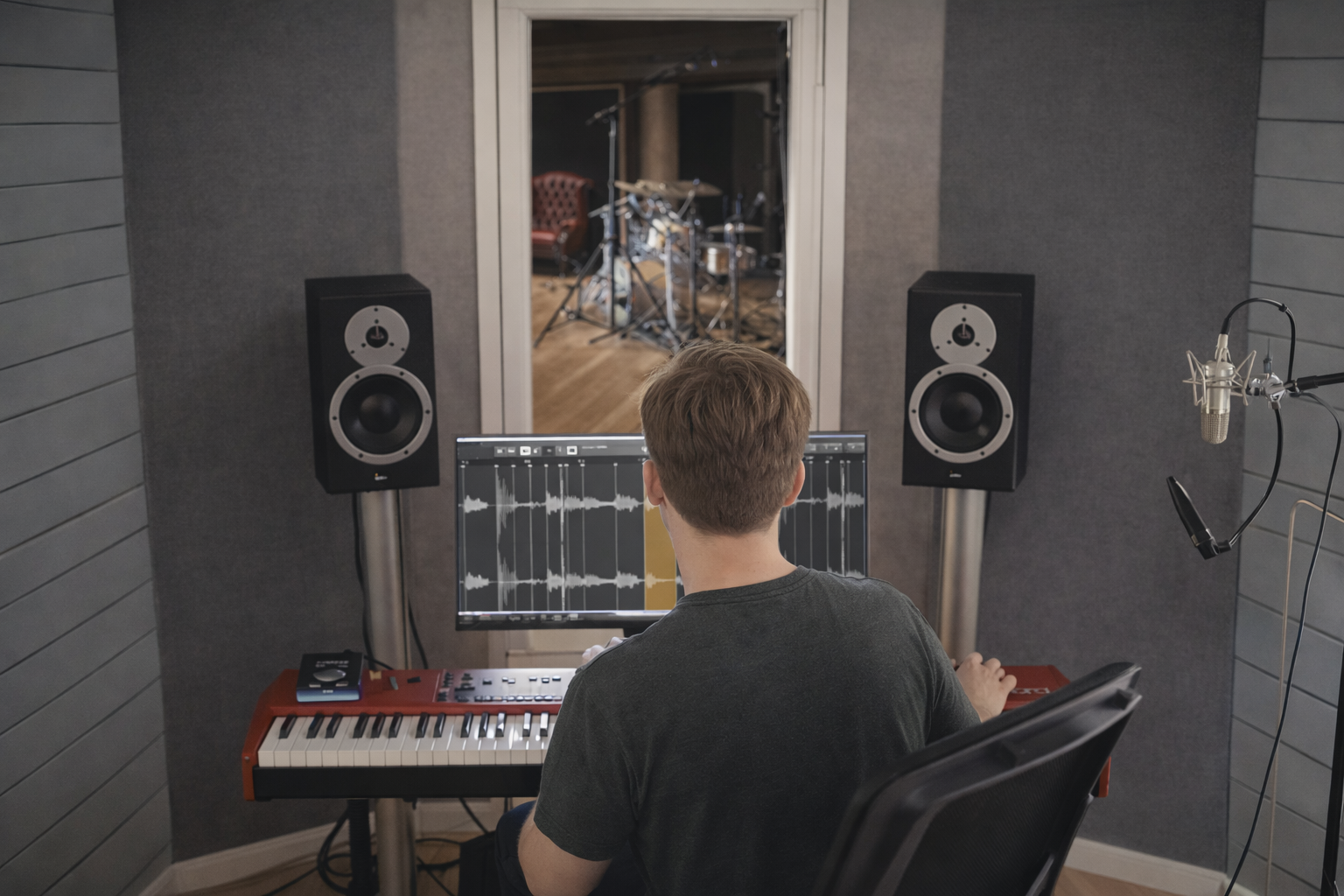 Produsent Eirik Molnes Husabø er også komponist og hjelper ofte til med både komponering og arrangering for de artistene som er innom.